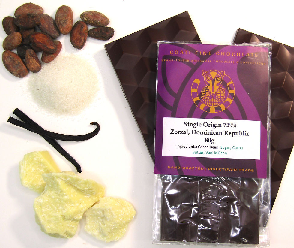 A selection of 72% and 85% dark chocolate bars using cocoa beans from a single origin e.g., Sur del Lago, Venezuela.